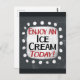 "Enjoy An Ice Cream Today" is a cute text design in gray with black and red text. It sits on a white accent shape and cute white polka dots surrounding it.