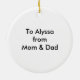 Lightweight, smooth, pure white ornament with nice sheen. Perfect size to be seen from across the room ... and to attract closer inspection! Price was great for ordering enough for the whole family! Clear, bold black design just as requested. Matches the order exactly. Just so nice!