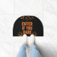 Welcome (or warn!) your guests with this spooky Enter If You Dare Halloween doormat. Featuring glowing orange lettering, jack-o’-lanterns, bats, and spiderweb accents, it’s the perfect way to set the mood before trick-or-treaters even knock.
