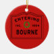 Christmas holidays in New England would not be complete without a festive "Entering Bourne" ornament. Great gift idea for someone living in the town of Bourne MA, or a Bourne neighborhood. Give one to your parents, grandparents, newlyweds, welcome to the neighborhood, housewarming you name it. Buy one for everyone on your Christmas gift list.