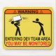 Funny mousepad with a clear warning to all interlopers: "WARNING. Entering Dev Team Area - You May Be Monitored"