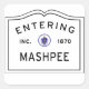 Show your Mashpee, MA pride with this perfect replica of the welcome sign you see when you drive into town. Mashpee is a Town of the Commonwealth of Mass. This is the official Mashpee town sign logo! Stick it to your car bumper, trunk, suitcase or buy a bunch as gifts!