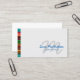 This chic entertainment professional business card has a colorful horizontally striped border on the left edge of the card. Your monogram letter appears in a bold cursive font. Perfect for talent, talent skills, performing arts, entertainment, show business, artistic, professional, personal themes.