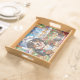 This is a well made, sturdy wooden tray with a flawless black finish and lovely map on the tray surface. It is both vintage & modern at the same time. Looks exactly like the photo; does not disappoint. So nice to find something of quality individually made and not the mass-produced 'shabby chic' merchandise seen in stores. I am so pleased to be able to give this to my college-age niece for her birthday. This can be used as a tray to hold jewelry or toiletries, or hung on the wall as art. The map surface is sealed (it is slightly shiny) so would be moisture resistant. It is well worth the asking price but I was able to apply a sale code as well. Very happy with my purchase. Map is crisp & clear and sealed with a water-resitant finish.