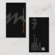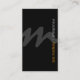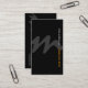 This elegant bold script entrepreneur business card features a large bold script dark grey monogram right in the middle of the card over a black background. Your name and title appear vertically on the right edge of the card in orange and white. Your other contact details including your business logo appear on the back of the card. The back of the card also features a smaller monogram letter in the same script font. Perfect for administration, management, professional, accounting, finance, business themes.