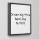Elevate your space with this bold motivational wall art featuring the timeless quote: “Dream big. Work hard. Stay humble.” Designed for high achievers, entrepreneurs, students, and creatives, this minimalist typography print delivers daily inspiration with clarity and style. Set on a clean white background with crisp black text, it’s perfect for modern offices, home workspaces, or personal development corners. Whether you're building a brand, chasing goals, or simply staying grounded, this empowering quote print reminds you to aim high, hustle smart, and lead with humility.