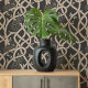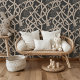 Entwined Elegance: Black and Beige Floral Bird Wallpaper