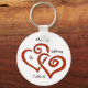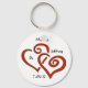 Red Entwined Hearts Keychain, on white background with customizable text, including date. Makes a great wedding favor!