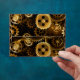 Seamless, metal, brass, gold gears on rusty dark background. Steampunk style.