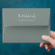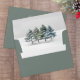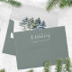 This design features an elegant Christmas envelope, with a watercolor pine tree design, with your return address, in calligraphy script typography, a botanical Xmas, winter green, minimalist style with a woodland forest rustic theme.