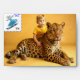 Envelope with a picture of a leopard and a boy. On top is a stamp with a face value of 50 cents, a girl is riding a snowboard down a mountain. For sending letters. From the author's collection. There is also another design. Write me an email and order.