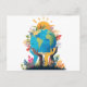 Environment - Earth Illustration with Hand & sun Holiday Postcard