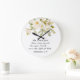 Wall clock with Christian inspirational quote scripture depicts a beautiful watercolor floral with simple white flowers and greenery. It features a powerful Bible Verse from Ephesians 2:8, "By Grace you have been saved, through Faith, ... it is the Gift of God"