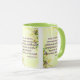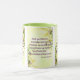 This two-tone mug features a sans print font with purple letters showcasing the "Ephesians 6:4 KJV" bible scripture verse over a background picture displaying a set of multi-colored flowers on each side of the scripture over a light yellow background in this floral theme. This verse is referencing the Book Of Ephesians 6th chapter showing the 4th verse in this bible scripture quote theme from the King James bible. The rim & handle are glazed in matching colors available in 11-ounce or 15-ounce sizes microwave and dishwasher safe ceramic construction.
