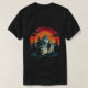 Capture the spirit of adventure with this stunning digital illustration featuring a bold circular composition. A lone hiker stands on a rocky outcrop, gazing at a majestic mountain under a glowing sun, set against a fiery orange and red sky. The dramatic contrast, detailed pine trees, and stylized clouds create a striking outdoor scene. Perfect for nature lovers, hikers, and adventure enthusiasts. The transparent background makes it ideal for custom designs on various products.