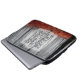 The sleeve is made of nice feeling material and seems very durable. I'm not sure how easy it'll be to clean, but the construction seems sound and the fabric is quick thick. I also like the double zipper. The printing is lovely and appears durable. The white on black contrast is nice, and the design very elegant.
