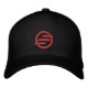 Black cap with red Equalizer logo on front with equalizer.com on back.
