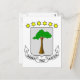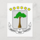 The national coat of arms of Equatorial Guinea was adopted on the 21st of August in 1979. This coat of arms shows a grey shield, which contains a tree. This tree is a silk cotton tree, or so-called "God tree". This is where the first treaty was signed between Spain and the local ruler. Over the shield, there are six six-pointed stars. They stand for the mainland and the five main islands.