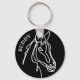 Equestrian horse head outline sketch drawing keychain with custom name. Personalized key chain design for horse lover, rider, owner etc. Unique Christmas or Birthday gift idea for him or her. Also nice as party favor or business give away. Add your own company name or slogan optionally. Black and white line art drawing.