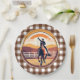 A Classic Brown Gingham With A Water Colored Olympic Equestrian Rider Center Paper Plate