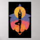 A girl standing on one leg in a balance position, practicing yoga at night under the moon
