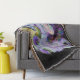 A quality printed throw has its advantages. This is a much finer weave throw than its loopier cousins, and though lighter, it is worth the investment for custom room accessorizing. The back is much prettier than the typical brown, and the fringe on the long sides very vivid, the selvage nicely done. Before photographing, I washed the throw in cold water, delicate, with a thicker woven throw the same size. On tumble dry low, this throw was dry in half the time as the other. This is a very practical quality if you use throws for furniture covers or to wrap up in frequently. The sleekness of the fabric makes it a great layer for accenting or protecting without the feeling of sitting on too much stuff. Perfect for napping or when you feel a light chill coming on. The color printing is beautiful and on this fabric, matched the design and color of my Photoshop image. This is an advantage for blending room fabrics and colors. The fringe on the short sides prints the colors from the design image and therefore varies from the side fringe. I streaked a white fractal line through the plaid pattern to give the illusion of weaving. This printed as crisp as an illusory thread, and put some white in the short side fringe, showing another advantage of print vs loomed- for artistic purposes, line lines, detail, and color integrity can be planned and preserved. My loomed throws have color limitations and more of a needlepoint texture. Print throws reproduce an exact image. The throw felt a little stiff straight out of the package, but this went away in the first delicate wash. Of course I searched the wash water for ink or bleeding and there was none.
