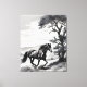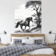 This picture immortalizes the intensity of nature when a majestic horse bursts through the scenario, galloping along an imposing tree. Each trait captures the strength and grace of this moment of dazzling.