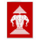 From 1952 until 1975 the country had a red flag, with a white three-headed elephant (the god Erawan) in the middle. On top of the elephant is a nine-folded umbrella, while the elephant itself stands on a five-level pedestal. The white elephant is a common royal symbol in Southeast Asia, the three heads referred to the three former kingdoms Vientiane, Luang Prabang, and Champasak which made up the country. The nine-folded umbrella is also a royal symbol, originating from Mt. Meru in the Buddhist cosmology.
