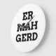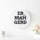 Dorky and fun typography text design clock featuring a word from the popular meme of Ermahgerd. Ermahgerd is a very obnoxious and lisped way to say "Oh my God!" Customize with your own text and background color. Use an ermahgerd translator such as this one [http://ermahgerd.jmillerdesign.com/#!/translate] to make your personalized text even more silly!
