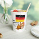 Stylish, patriotic GERMAN THANKSGIVING - ERNTEDANKFEST - paper cups with CUSTOMIZABLE TEXT, showing the map outline and flag of GERMANY on a banner pole with a pumpkin and autumn fall leaves. The wording reads FROHES ERNTEDANKFEST - THANK YOU LORD FOR YOUR FAITHFULNESS AND FOR ALL YOU HAVE DONE. This text is CUSTOMIZABLE, so you can change to all German, all English, or a mixture of both! Matching party supplies and greeting cards available.