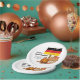 Stylish, patriotic GERMAN THANKSGIVING - ERNTEDANKFEST - paper plates with CUSTOMIZABLE TEXT, showing the map outline and flag of GERMANY on a banner pole with a pumpkin and autumn fall leaves. The wording reads FROHES ERNTEDANKFEST - THANK YOU LORD FOR YOUR FAITHFULNESS AND FOR ALL YOU HAVE DONE. This text is CUSTOMIZABLE, so you can change to all German, all English, or a mixture of both! Matching party supplies and greeting cards available.