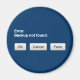 This magnet is for the computer lover or hater in your family or workplace. Features the message "Error. Backup not found." with buttons labeled OK, Cancel, and Panic.