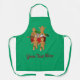 Great color and even though I ordered the kid size, it covers well enough to use during the holidays. I am not a big woman and prefer a shorter apron. I stand 5"6" and the length of the garment goes to mid-thigh. The tie straps fit well at my waist and even though there is no neck strap adjustment, the opening is plenty big enough. I am happy with the size and fit. I am sharing my apron with my 10 year old grandson, too! The color is vibrant and looks good, as shown on the website. The stitching looks strong and reinforced. Photographed is front side and back side of the apron, reinforced straps and coloring. My phone camera may not be the best at showing the details.