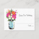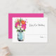 Perfect for a country style wedding or maybe you just love Mason Jars! Mason Jar hanging on a hook with Fuchsia Pink and Orange Gerber Daisies and white Wildflower Daisies. Fuchsia Pink on the back. If you have any questions on this design or want a color change please email me paeam/Ivula@labellarue.com Also check for the MAIN INVITE, RECEPTION and RSVP Cards to match!