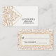 CUSTOMIZE THE COLOR: The leaf swirl corners can be color changed using the "customize it" button. Look for the Background tool and select your personalized color. DESIGN: Matching reception decor, escort table seating cards for assigned seating at wedding receptions, bridal showers, rehearsal dinners or business formal dinner events. DIY, punch a hole in the end of the card and tie to a gold glitter painted branch for a dramatic and inexpensive reception decor statement, or lay on a table in alphabetical order. You will need to hand write each guest(s) name and table number on these place cards, as they are printed 100 at a time. Created with a swirl, scroll pattern into a damask overall patterned design that is both modern and classic traditional. The image has two gold look layers, one is a gold "glitter" the other is a three dimensional looking golden border with your selected background color inside of the swirls. Pretty, classy with stylish elegance. It has a vintage charm yet a contemporary sophistication that is refreshing. Bold Graphic Design by Audrey Jeanne Roberts