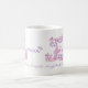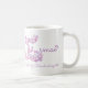 Letter E name and name meaning mug. Pretty heart and flower capital E doodled typographic design featuring hearts and flowers and the words Esmae A joyful beauty. Beloved and respected. © Unique art and design by Sarah Trett. www.sarahtrett.com for www.mylittleeden.com on zazzle