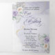 Beautiful watercolor lilac peonies and cream anthurium flowers - side by side Spanish/English bilingual with couple photo in center.