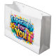 Delightful “Especially for You” gift bag design featuring bright typography, flowers, hearts, and gift illustrations. Perfect for birthdays, thank-you gifts, celebrations, and special surprises. A playful and heartwarming design that makes every gift feel thoughtful and personal.