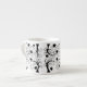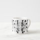 Espresso cup with drawing of little whimsical black fishes swimming in Nature