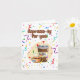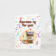 Colorful card with coffee and lots of confetti to wish a special person who loves coffee a Happy Birthday with a pun message: Espresso-ly for you!