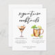 This chic signature cocktails list features simple black typography above 2 drinks and their ingredients for your wedding bar. An espresso martini and Moscow mule drawing add a cool flair to your bar menu sheet. Complete with the couple's names and date for their reception.