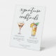 This chic signature cocktails list features simple black typography above 2 drinks and their ingredients for your wedding bar. An espresso martini and Pina Colada drawing add a cool flair to your bar menu pedestal sign. Complete with the couple's names and date for their reception.