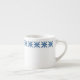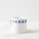 Espresso mug shown with a whimsical flower print in the color navy blue. Customize this item or buy as is.