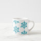 This mug is shown in the espresso style with a fun festive holiday snowflakes print.