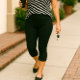 This versatile black capri legging is a wardrobe essential. The neutral color provides effortless styling options, suitable for various tops. It can be styled casually for errands, shopping, or relaxing at home, and is also ideal for yoga or active pursuits like walking in the park.