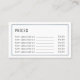 Price cards for Cleaners. The design features an icon of a broom. All text is fully configurable for the entry your own details. The back of the card has space for the prices of up to six items to be entered.
