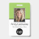The front includes a prominent photo with the ability to change the background color if you need different colors for security areas.