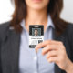 BACK: You can add a scan bar code on the back and a place to add information if the badge is lost.