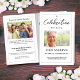 Funeral program with a classic white background and a clean and simple dashed border for men or women. Template includes space for a large photo on the front and back page, plus another photo above the obituary on the inside page. All text and photo images can be customized so it's easy to edit and quick to create a special program for your loved one.