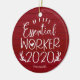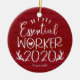 Essential Worker 2020 Covid Christmas Red Wood Ceramic Ornament